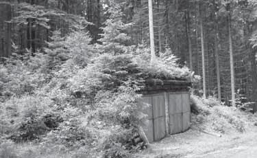 Obr. 1.1 Samovolné ozelenění garáže, Jizerské hory, rok 2007
