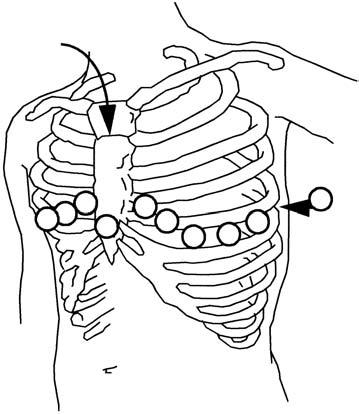 Perioperační využití teorie o snímání elektrické aktivity srdce se opírá o systém t ř í nebo pěti elektrod a jejich modifi kací. Ačkoliv se v kardiochirurgii dospělých používá pět elektrod, některé modi fi kace t ř ísvodového systému mohou být pro detekci dysrytmií a ischemie stejně užitečné. Současné perioperační systémy umož ňují také záznam standardního 12svodého EKG, buď s nasazením všech elektrod, nebo jen s pěti (EASI). Operační pole ale brání přesnému a spolehlivému umístění elektrod pro 12svodé EKG či systém EASI, a proto se prakticky nepoužívají. V časné pooperační době je trvalé nasazení všech 10 elektrod snadnější, ale zvyšuje nepohodlí pacienta a klade vyšší nároky na ošet řování. Systém EASI, který vychází z vektokardiografie a používá ortogonální Frankovy svody, rekonstruuje záznam všech 12 standardních svodů jen z 5 elektrod [1]. Senzitivita je srovnatelná se standardním záznamem, bohužel nutnost umístění dvou elektrod na sternum se nedá zajistit př i sternotomii ani po operaci, kde tomu brání sterilní krytí opera č ní rány. Standardní 12svodé EKG se proto nejčastěji získává po jednorázovém nasazení elektrod s četností podle diagnostické pot řeby.