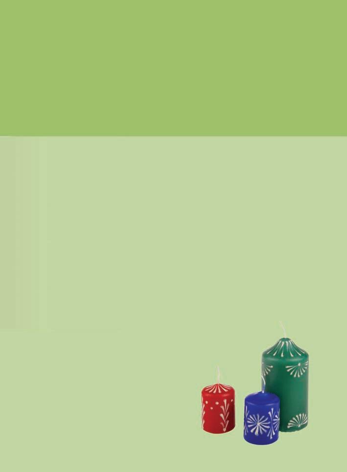 Dnes obliba svíãek stále roste. Takové mnoÏství typÛ, tvarÛ, velikostí, vÛní nebo zpÛsobÛ zdobení tento obor dosud nikdy nezaÏil. Pfiibyly inové suroviny aspousta originálních nápadÛ. Atak si mÛÏe svou svíãku vyrobit dnes skuteãnû kaÏd˘.