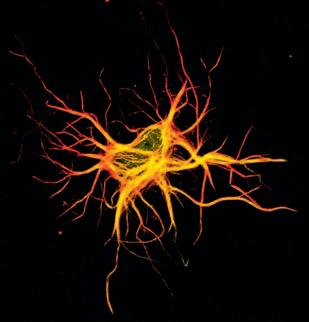Obr. 1.7 Cytoskelet neuronu – červeně zvýrazněné jsou protilátky proti bílkovinám cytoskeletu (SM)