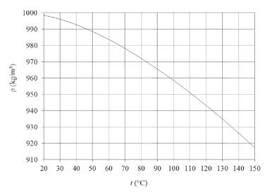 • Hustota ρ (kg/m3) závisí na teplotě, pro studenou vodu ρ @ 1000 (kg/m3). Závislost hustoty vody na teplotě je znázorněna na obrázku 1.1.
