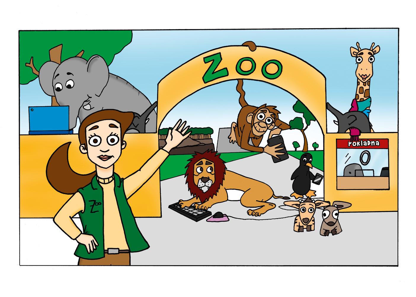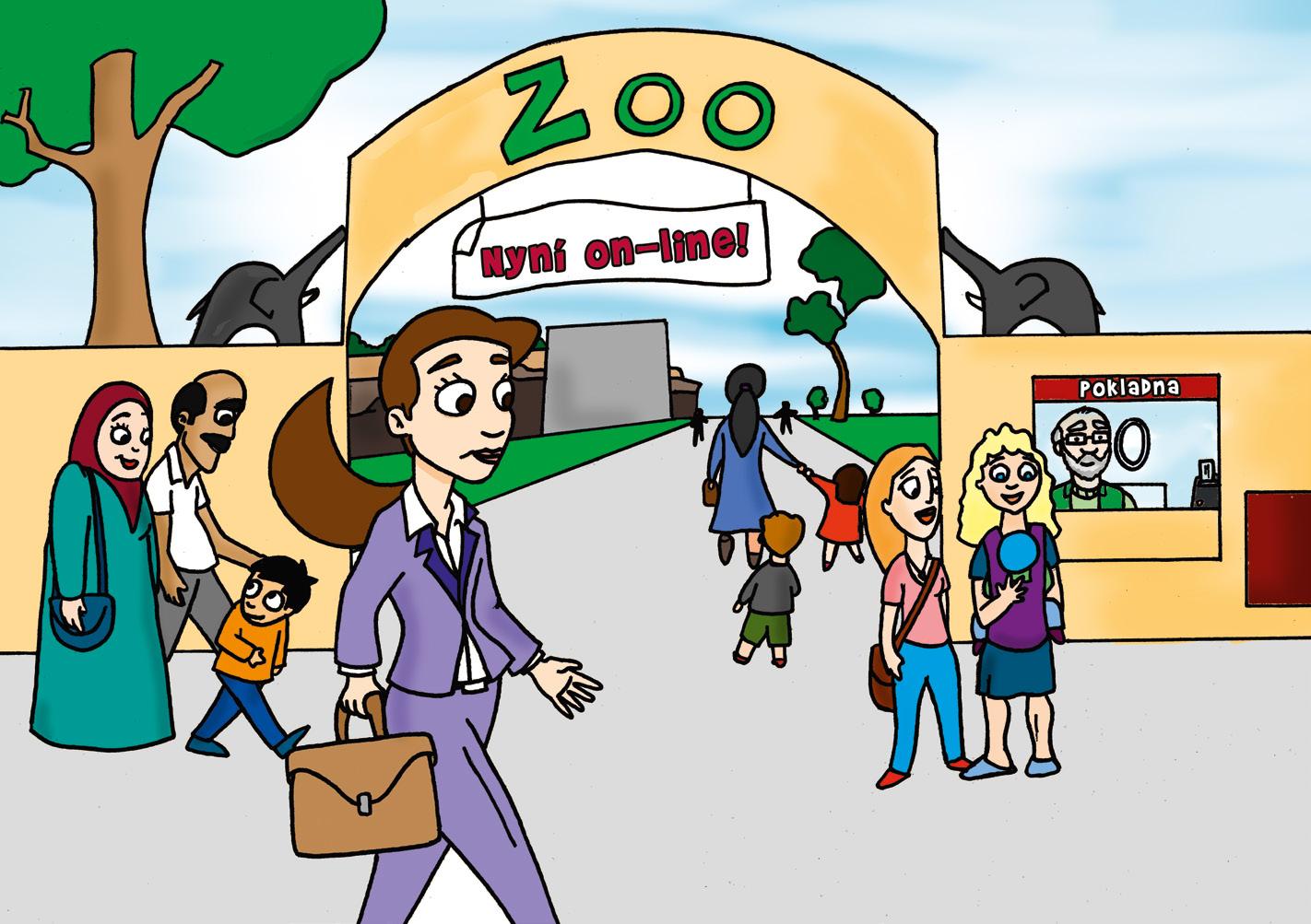 Velcí i malí návštěvníci přicházejí, aby se podívali na zvířátka a za krásného dne se prošli po zoo. Zrovna přichází také její ředitelka Eliška.