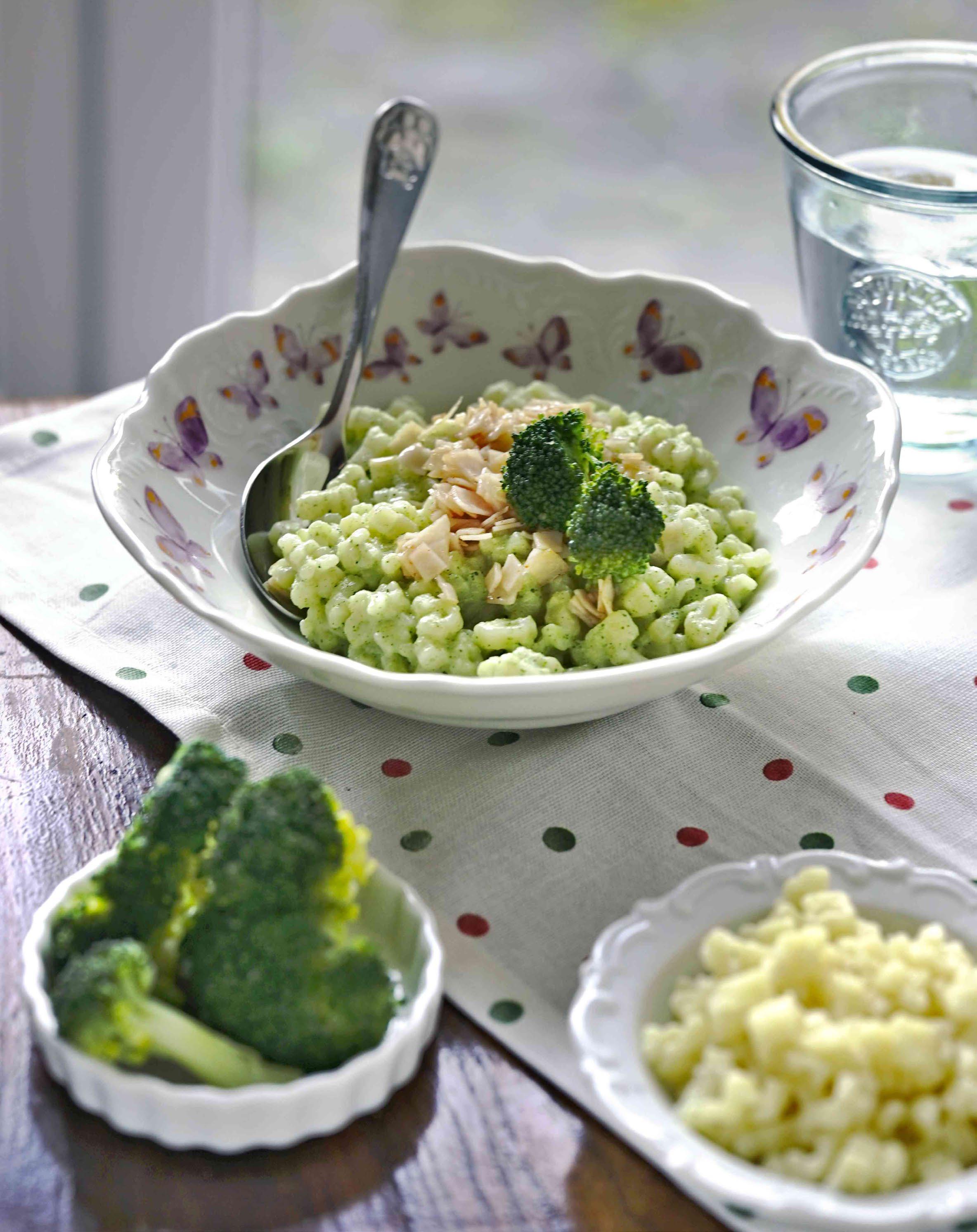 Mezitím rozeberte brokolici a dejte ji vařit do vody v jiném hrnci. Jakmile je měkká, slijte ji přes cedník a propláchněte ledovou vodou, aby neztratila jasně zelenou barvu. Vývar si ponechte.
