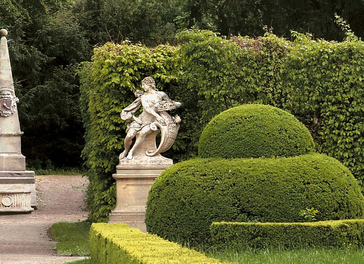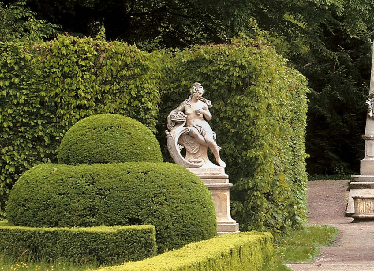 Bohatá sochařská výzdoba buchlovické barokní zahrady je situována v souladu s barokním principem osové souměrnosti