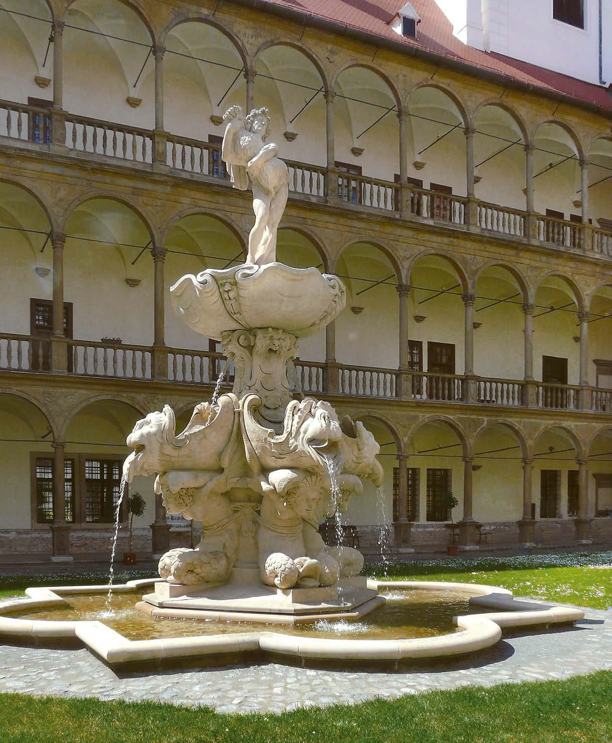 Zajímavá kašna Pietra Materny z roku 1635 patří k vrcholným sochařským dílům moravského i českého manýrismu