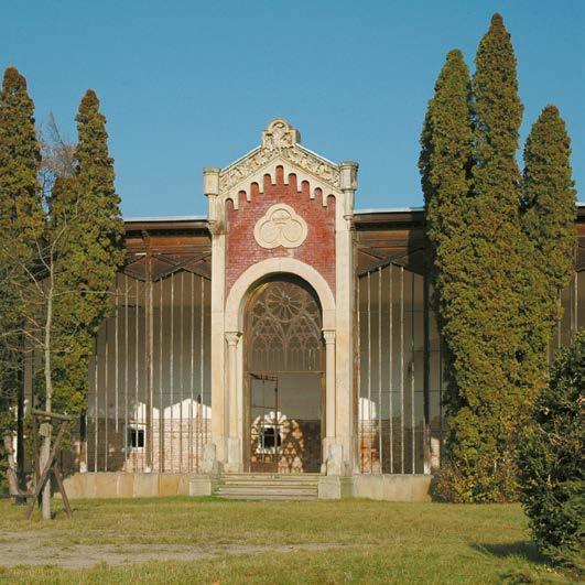 Mezi zahradní stavby parku patří i dlouho zanedbávaná, dnes však už rekonstruovaná, neogotická oranžerie