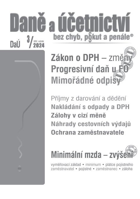 l Zavádí se limit pro osvobození nepeněžních „volnočasových“ zaměstnaneckých bene fitů (rekreace, zdravotnické a léčebné služby a zboží, služby vzdělávacích a sportovních zařízení, kultura a tištěné knihy atd.) ve výši poloviny průměrné mzdy. V roce 2024 bude možné v úhrnu osvobodit tyto benefity do částky 21 984 Kč ročně (poloviny průměrné mzdy), tj. při rozpočítání na měsíc jde o částku 1 832 Kč měsíčně. Poskytnuté nepeněžní benefity nad limit 21 984 Kč se budou zaměstnancům zdaňovat jako součást mzdy. Problémem pro zaměstnavatele bude ocenění některých volnočasových benefitů. l Výdaje na nepeněžní benefity poskytované zaměstnancům budou na straně zaměst‑ navatele daňově neuznatelné, pokud budou současně u zaměstnance osvobozené (viz výše). Naopak daňově uznatelné budou výdaje na nepeněžní benefity, pokud budou