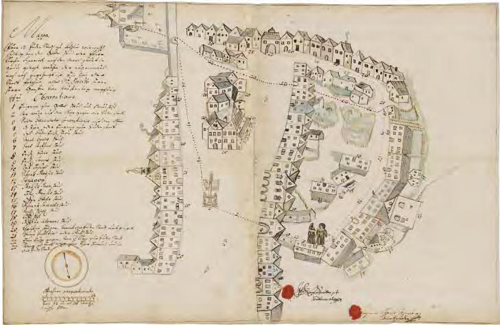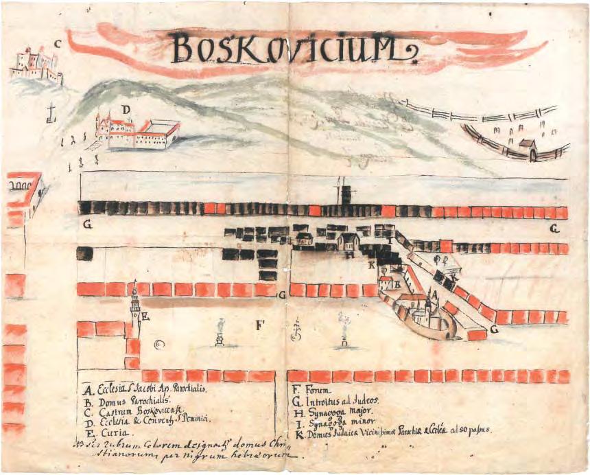 Boskovice 1727, pohledový plán separace žid. osídlení od SSV (BOSKOVICIUM), anonym, perokresba/akvarel, 41,5 × 32,5, leg. 10 zn., MZA Brno, D 22 SMP, i. č. 1170, s. 1316