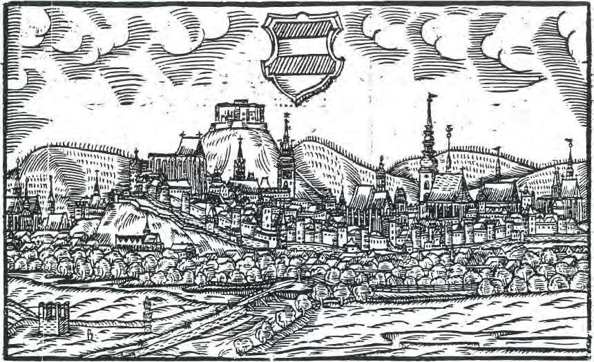 Brno 1592, pohled od VJV (znak města), J. Willenberg, dřevořez, 14,5 × 8,5, kniha Zrcadlo 1593, volné dílo