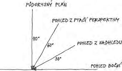 V praxi se po staletí užívaly formy výtvarného zachycení sídel z různých výškových úhlů s postupným přechodem: od nejpřirozenějšího bočního pohledu přes pohled z nadhledu, (kdy stanoviště kreslíře nebo jeho zvolený záběr svírají výškově úhel kolem 30 stupňů od vodorovné základny), a pohled z ptačí perspektivy (úhel kolem 60 stupňů proti základně) až ke kolmému půdorysnému plánu (úhel 90 stupňů k základně). Formálně můžeme ještě druhy záběrů členit na pohled dálkový (s podstatným začleněním sídla do krajinného kontextu), pohled panoramatický (široce pojatý víc než obvyklých horizontálních zhruba 90 stupňů viděných očima), axonometrický pohledový plán, (kdy jsou všechny budovy z půdorysu zakresleny se stejně šikmým sklonem a tedy se nesbíhají perspektivně v úběžníku) a kavalírskou či vojenskou perspektivu (kdy jsou pohledy na budovy – jejich výšky – sklopeny v půdorysném plánu o celých 90 stupňů). K zachycení nadhledu, a vlastně též půdorysného plánu, byla nezbytně nutná výtvarně-prostorová představivost a základní znalost lineární perspektivy ze strany kreslíře (perspektiva je znázornění trojrozměrného prostoru z jednoho či více bodů na rovinné ploše s cílem získat co nejvěrnější obraz skutečnosti). Je proto nutno smeknout před mnoha kreslíři v minulosti, že měli při tehdejších omezených technických možnostech takovou prostorovou představivost, že dokázali zachytit rozvrh města z výšky s vysokou přesností a se všemi detaily.