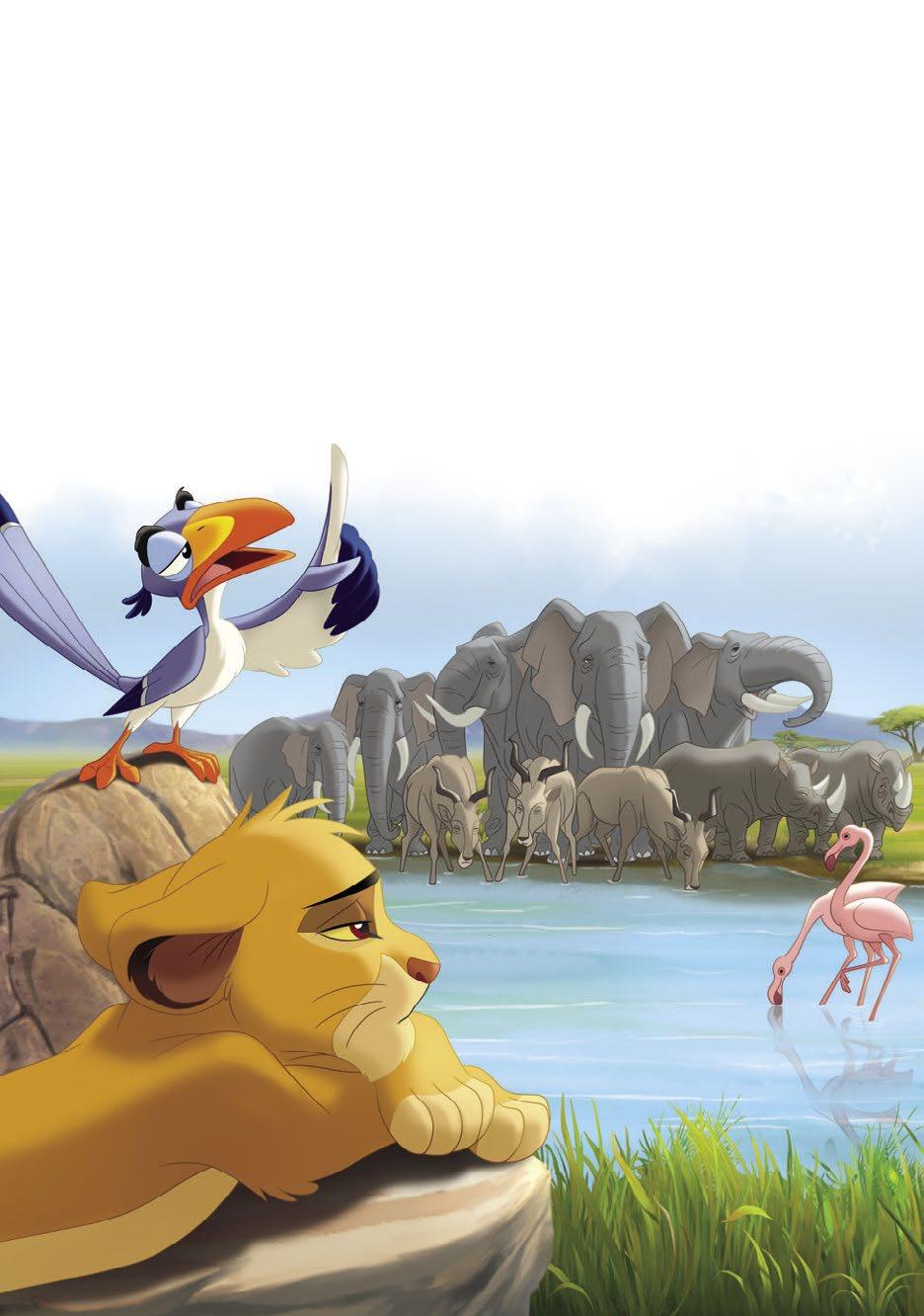 Zazu odvedl Simbu k napajedlu, kde se zvířata ze Lví země střídala v pití vody.