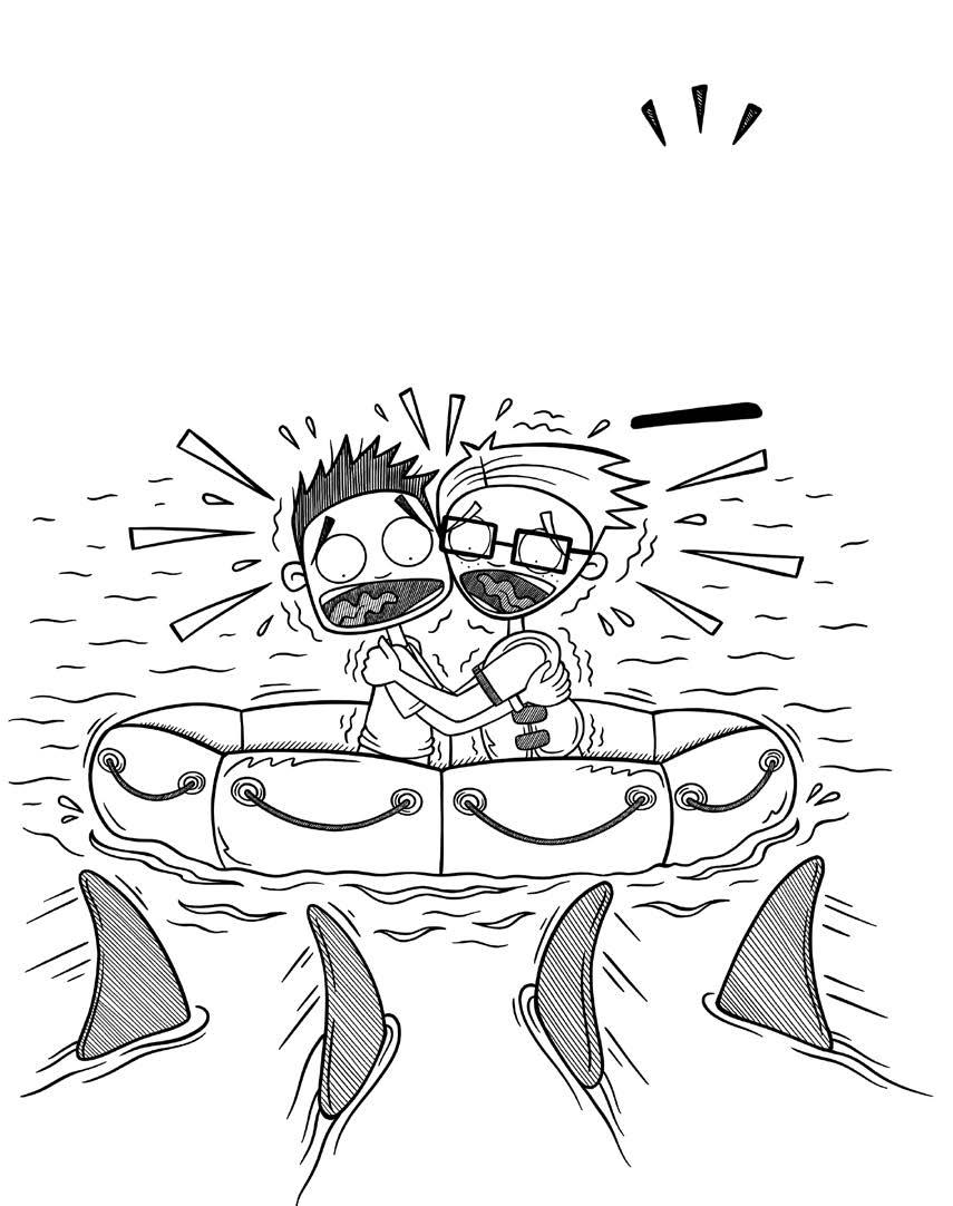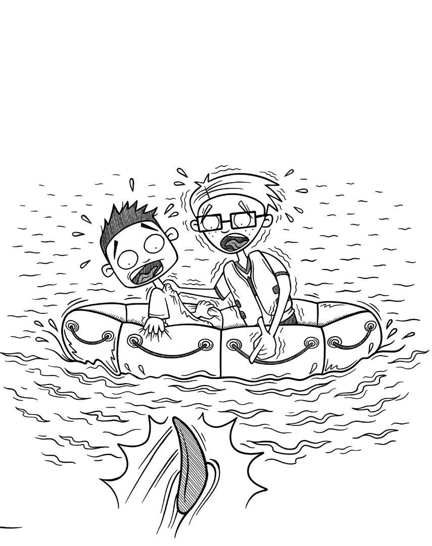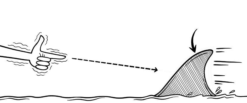 Sledujem, kam ukazuje jeho roztrasený prst. Zrazu to zbadám. Prerezáva vodu. Pláva priamo k nám.