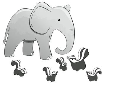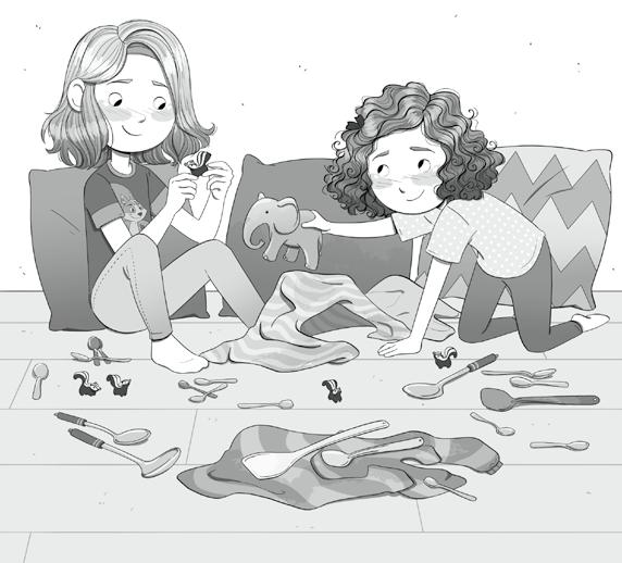 „Zlomyseľné varechy napadli naše územie, oci!“ odpovedala mu Zoe. Plastovým slonom pochodovala smerom k jednému z mojich malých skunkov. „Naskoč si! Zachránim ťa!“
