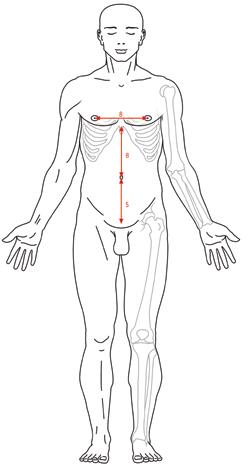 Obr. II.2 Typické míry na břiše a hrudníku