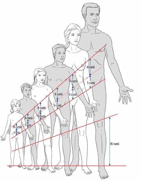 • Proporcionální cun – některé krajiny těla jsou rozděleny na určitý počet dílků. Jeden takový dílek je právě jedním cunem (proporcionálním). Je zřejmé, že