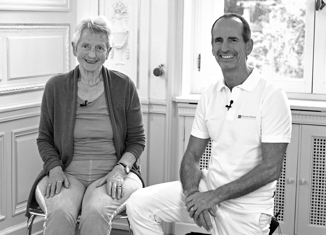 Ruth Liebscherová se svým synem Rolandem při práci na natáčení videa k tématu „Devadesát let a ve formě“ pro náš kanál na YouTube („Die Schmerzspezialisten“).