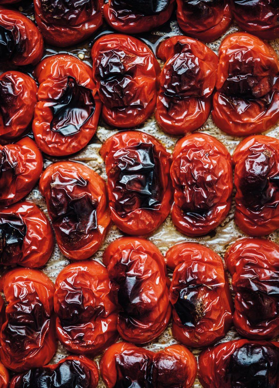 Nejraději peču rajčatové papriky – je to odrůda s hustou, masitou a aromatickou dužinou. Mimo sezónu peču obyčejné papriky – většinou červené nebo žluté, nebo míchám dvě různé barvy, protože to na talíři vypadá krásně.