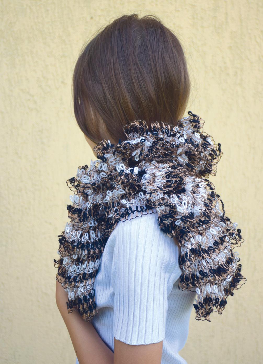 Výroba bambulkové šály z takto efektní příze patří k tomu těžšímu z pletařského umění. Je potřeba spíše chytit ten správný grif a pak uvidíte, že takovou šálu zvládnete uplést za jediný večer.