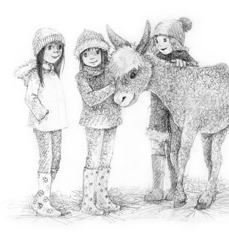 uši. Potom ji dívky vypustily ven na pastvinu, aby mohly z její stáje vyvozit špinavou slámu. Do žlabu nanosily čerstvé seno, do korýtka nasypaly trochu granulí pro oslíky a kbelík naplnily čerstvou vodou.