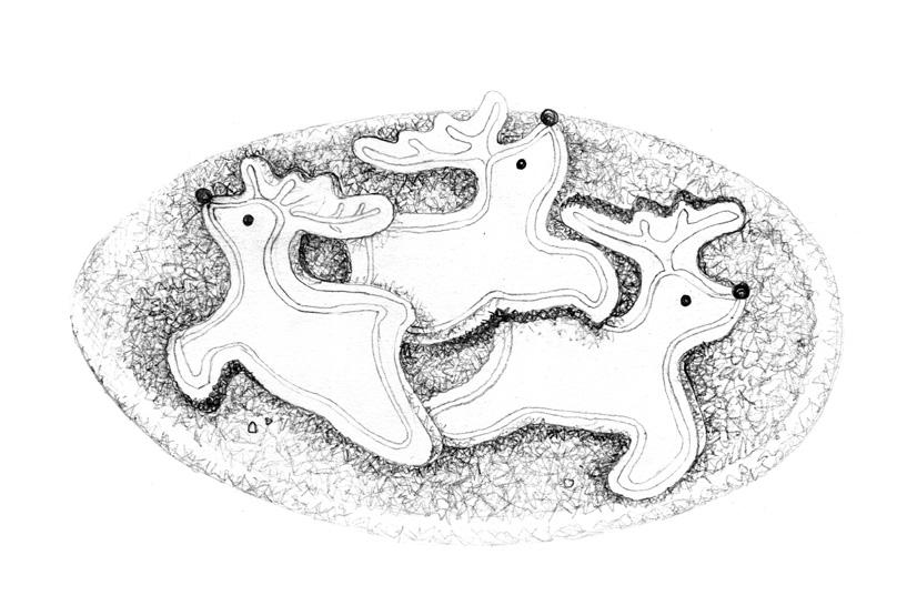 né kuchyni. Po celém domku byla spousta vánočních přáníček, kartiček a ozdob a odněkud tiše hrály vánoční koledy. „Ty sušenky jsou vynikající, Lucinko!“ zvolala Růženka, sotva se do jedné zakousla. „A líbí se mi, že mají tvar soba!“