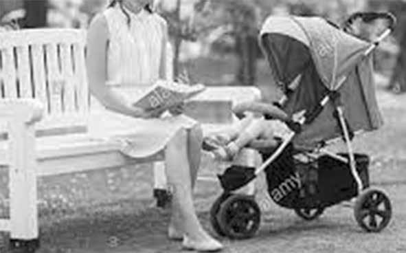 Foto ze života: Maminka s kočárkem chystající se na dráhu účetní se učí podle této knihy na lavičce v parku.:‑)