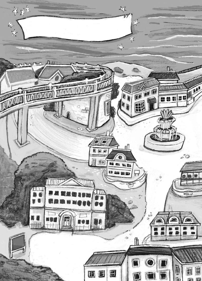 Na Trhovém náměstí chlapec konečně zvedl zrak. V jeho středu pyšně stála fontána splněných přání. Ze čtyř stran ji obklopovala veselá průčelí obchodů a kaváren. Pod zvlněnou hladinou fontány se blýskalo mnoho měděných pencí, jiskřících v teplém světle lamp. Felixův nepříjemný pocit se