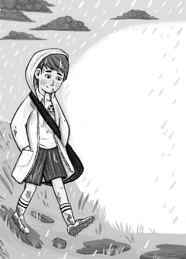 Felix si rezignovaně povzdechl, přezul se z kopaček do tenisek a vydal se na nudnou a otravnou cestu domů. Oči držel přilepené k chodníku, a aby se trochu zabavil, počítal kaluže, až nakonec dorazil do centra Uhelné Lhoty.