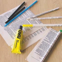 Tyto pomůcky je dobré mít stále po ruce, neuvádíme je proto u jednotlivých návodů: tužka, nůžky, řezačka na papír, pravítko, kružítko, lepidlo na papír – klih, univerzální lepidlo.