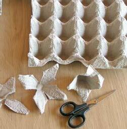 Z plata vejce nebo boxu vystřihneme dílky složené ze čtyř prvků – například okvětní lístky. Tento základní díl se skládá ze čtyř spojených dílků (lísků). Vzniklé lístky můžeme zformovat pomocí nůžek.