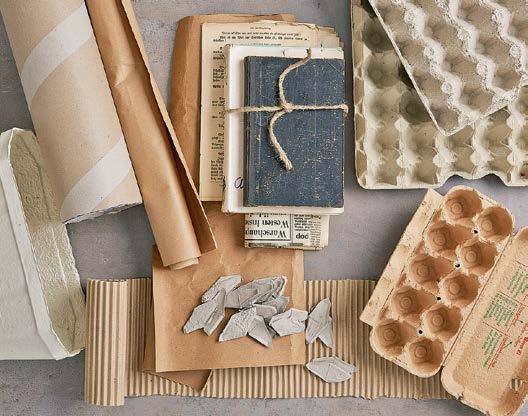 listy ze starých knih, balicí papír, papír k vyložení banánových krabic, vlnitou lepenku, lepenkové trubičky a válečky, lepenkové krabičky od ovoce, boxy a plata na vejce.