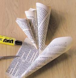 Jednotlivé stránky tiskovin navineme na stébla slámy, tužky nebo jiné hůlky a slepíme. Průměr roličky závisí na velikosti omotávaného předmětu (obr. 6).