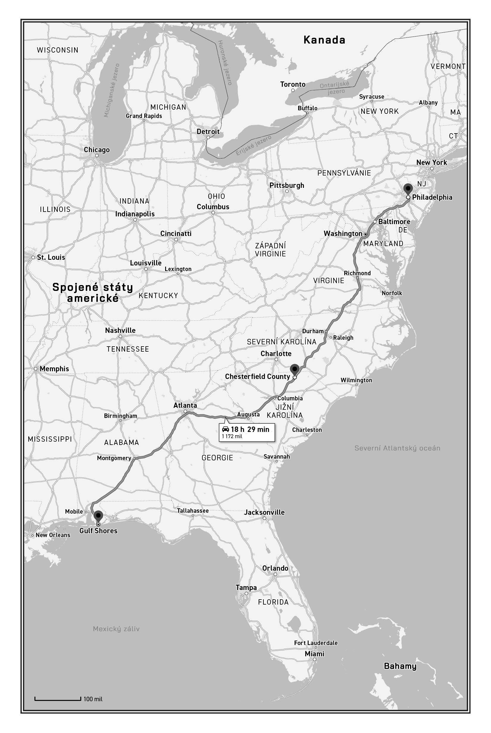„Ne, je to v pohodě,“ přehlušil ji Oliver, který právě přejel prstem po displeji. „Už nám to našlo novou cestu. Jeď pořád po téhle silnici, dostaneme se do malého městečka Ruby. Za ním odbočíme doleva, chvíli pojedeme na jih k národnímu parku Carolina Sandhills,“ četl z obrazovky, „a tábořiště by pak už mělo být někde tam. Hej, lidi, už asi jen deset minut.“