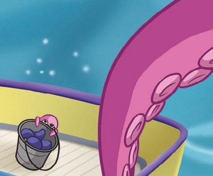 „Dej si pár křupavých medúzových chipsů,“ nabízel mu. Nevšiml si, že se mu ke kyblíku s návnadou přisálo mládě chobotnice.
