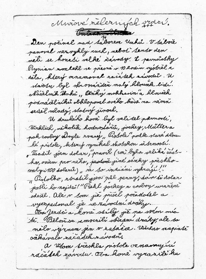 O Josefově literárním talentu nicméně Marie informována byla. „Dostali jsme za domácí úkol slohovou práci na téma Předvánoční nálada. Byli jsme kamarádi, a tak jsem Joskovi řekla — ty to umíš, napiš mi tu slohovku. Profesorka češtiny pak prohlásila, že nejkrásnější práci jsem měla já, ať ji přečtu nahlas. Líbila se a skoro všichni ve třídě se rozbrečeli. Nikdy jsem nepřiznala, že ji psal Joska. Tenkrát za to nic nechtěl, ani pusu, kterou by Danny určitě loudil.“48