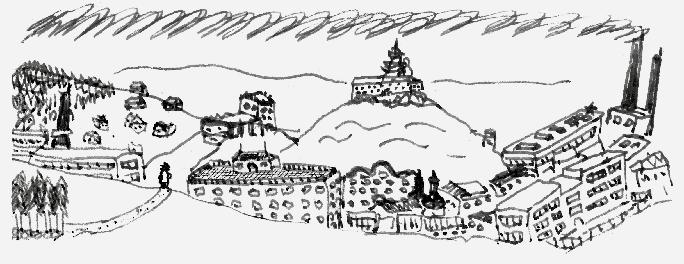 Náchod v kresbě Josefa Škvoreckého z roku 1950