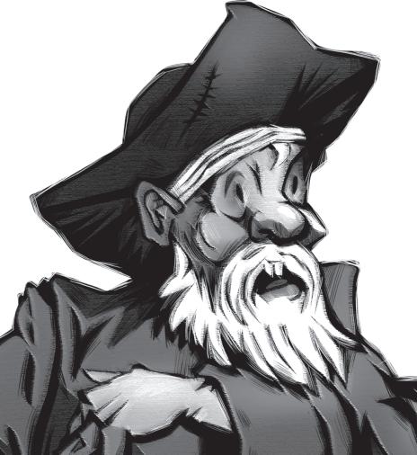 Captain is an old pirate. He lives and dies in Jim father’s inn.