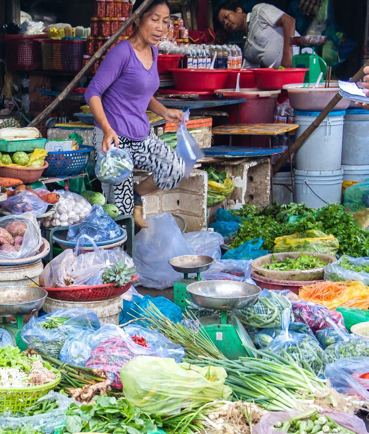 Tyto bylinky někdy na tržnici jsou a někdy ne. Záleží na období ve Vietnamu. Například po našem čínském novém roce se špatně shánějí klasnatky.