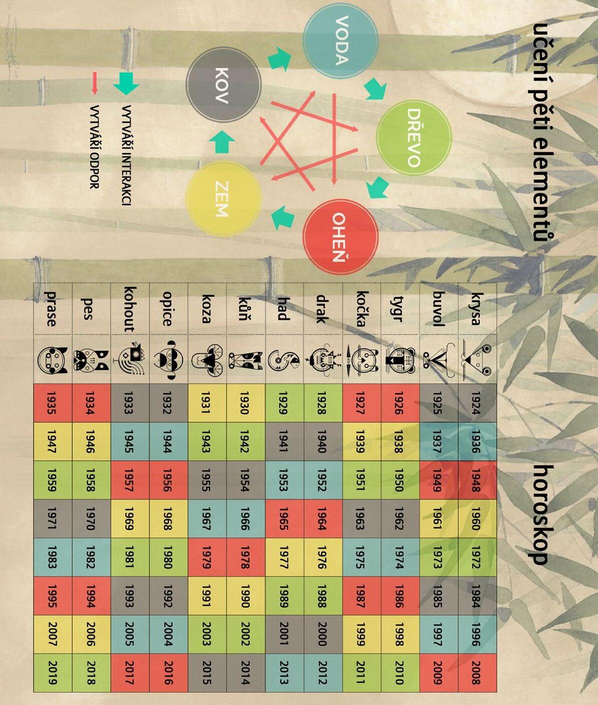 Učení pěti elementů pochází z Číny a je jedním ze základů tradiční čínské medicíny, feng-šuej, hudby, astrologie, bojových umění i jídla. Pět prvků tvoří: dřevo, oheň, zem, kov a voda. Některé elementy se doplňují, jiné se naopak navzájem odpuzují.