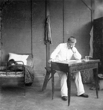 Alfred Dreyfus ve své ubikaci na Ďábelských ostrovech.