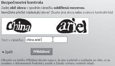 Po klepnutí na tlačítko Přihlásit budete vyzváni k opsání bezpečnostního kódu, který zamezuje auto-