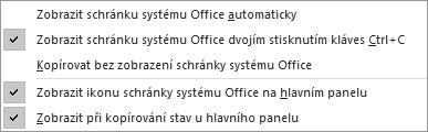 Obrázek 1.26: Nabídka možností pro schránku systému Office