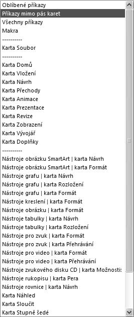 Není jedno, kterým tlačítkem myši klepnete na zvolenou položku pásu karet. Levé tlačítko myši vykoná příkaz dané položky, pravé tlačítko myši zobrazí místní nabídku příkazů: