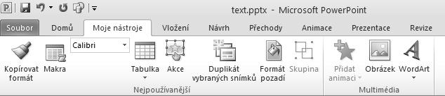 Poznámka: Novinky, kterými je vybavena aplikace Microsoft PowerPoint 2010, jsou popsány v samostatné kapitole Novinky verze 2010.