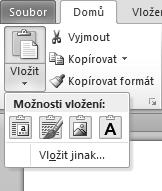 2. Na kartě Domů klepněte ve skupině Schránka na šipku v dolní části tlačítka Vložit.