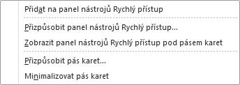 Přidat na panel nástrojů Rychlý přístup