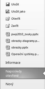 Obrázek 1.22: Naposledy otevřené prezentace v seznamu příkazů Backstage