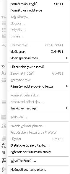 Obrázek 2.21 Nabídka Text umožňuje vytvořit text a upravovat ho