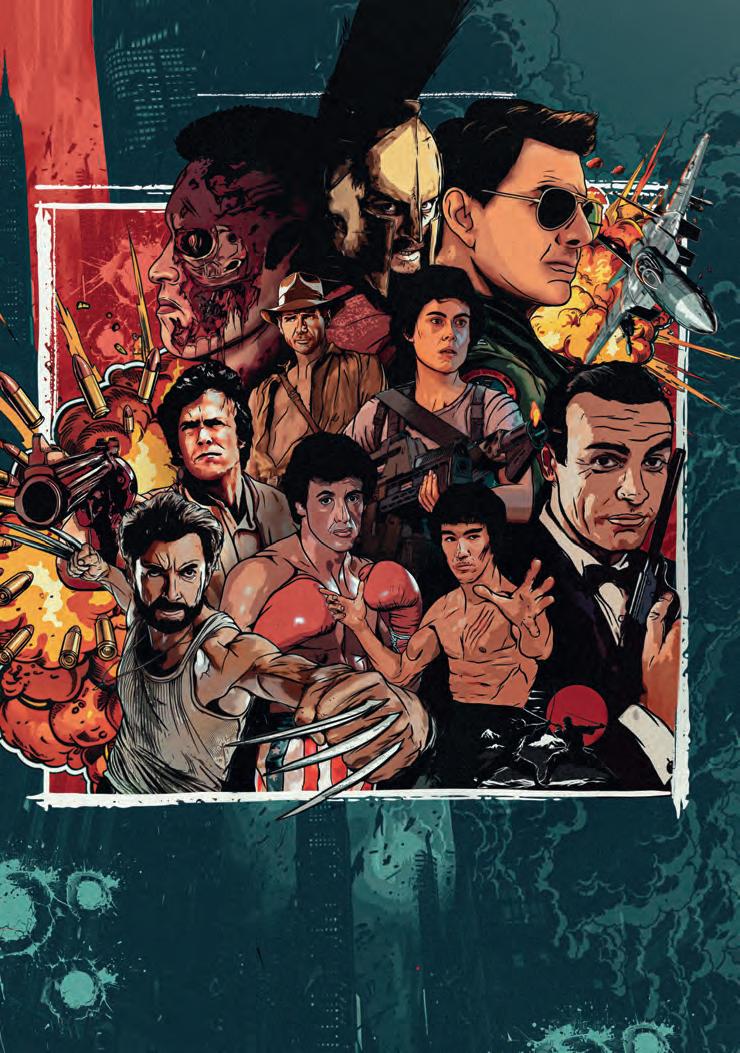 něco děje. Tj. každý a vlastně tedy žádný. i proto se na začátku minulého století do kin sice lákalo na akci, zvraty a napětí, ale akční flm jako svébytný žánr neexistoval, místo toho jsme měli grotesky, flmy s odvážnými bukanýry, statečnými kovboji, prohnilými gangstery, hrdiny světových válek, poctivými policajty a všehoschopnými tajnými agenty. na svou hvězdnou chvilku si tak akční flm musel počkat do zmíněných osmdesátých let, kdy se objevila celá řada výrazných tváří a flmová branže dospěla do stavu, kdy byla schopná produkovat jako na běžícím pásu akční spektákly s rvačkami, honičkami a přestřelkami tak vzdálenými od reality, že se jich publikum nemohlo nabažit. Ryzí akce najednou nepotřebovala přidružené žánry, aby sama o sobě zářila na stříbrných plátnech celého světa. defnovali ji hrdinové –jak se v americe často říká – větší než život, dalece přesahující svými schopnostmi běžného člověka, ať už jde o bojový potenciál, ochotu trousit trefné hlášky s dokonalým načasováním, nebo trochu toho štěstíčka. akční flm tedy, slovy klasika, neexistuje a přece tu je! Právě díky hrdinům, jimž jsme tuto knihu zasvětili.