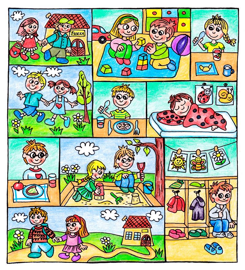 Já jdu dneska do školky, pro kluky i pro holky, máme se tu všichni rádi, a jsme dobří kamarádi.