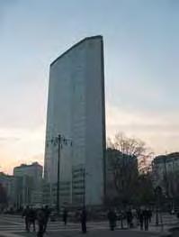 2l Barevný model – maketa nerealizovaného projektu Gio Pontiho mrakodrapu (repro z: Domus, č. 470, 1969) vykazuje eleganci, subtilitu a dynamičnost evropského mrakodrapu; projekt předpokládal úpravu fasády k využití efektu „self-lighting“